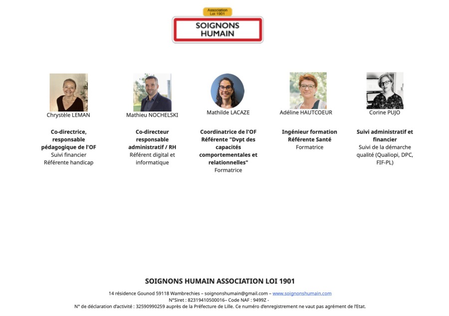 Cliquez sur l'image pour découvrir l'équipe de Soignons Humain Formation à votre écoute pour vous accompagner